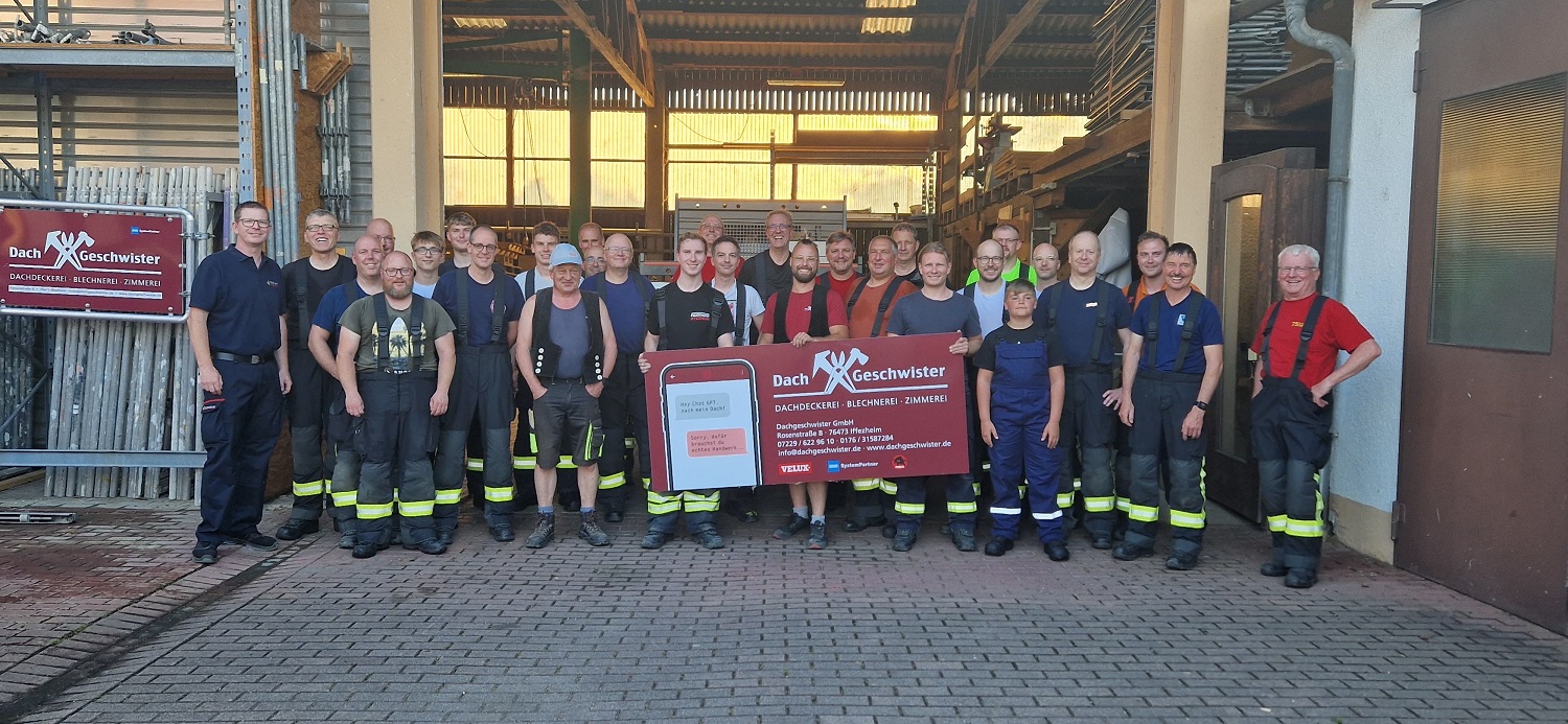 Ein herzlicher Dank geht an den Gründer der Firma DachGeschwister, Andreas Zastawny, und den vorherigen Betriebsleiter Erwin Weitz (Fa. Ziermann) für die großzügige Bereitstellung des Übungsobjektes. Nach dem Firmenwechsel zum Jahreswechsel hat sich in den Hallen und Werkstätten einiges räumlich und baulich geändert. Die Mitglieder der Feuerwehr konnten sich hiervon einen wertvollen Einblick verschaffen. Im Ernstfall hilft die Ortskenntnis enorm, und wir sind dankbar, solche Übungen bei unseren Firmen in Iffezheim durchführen zu können.