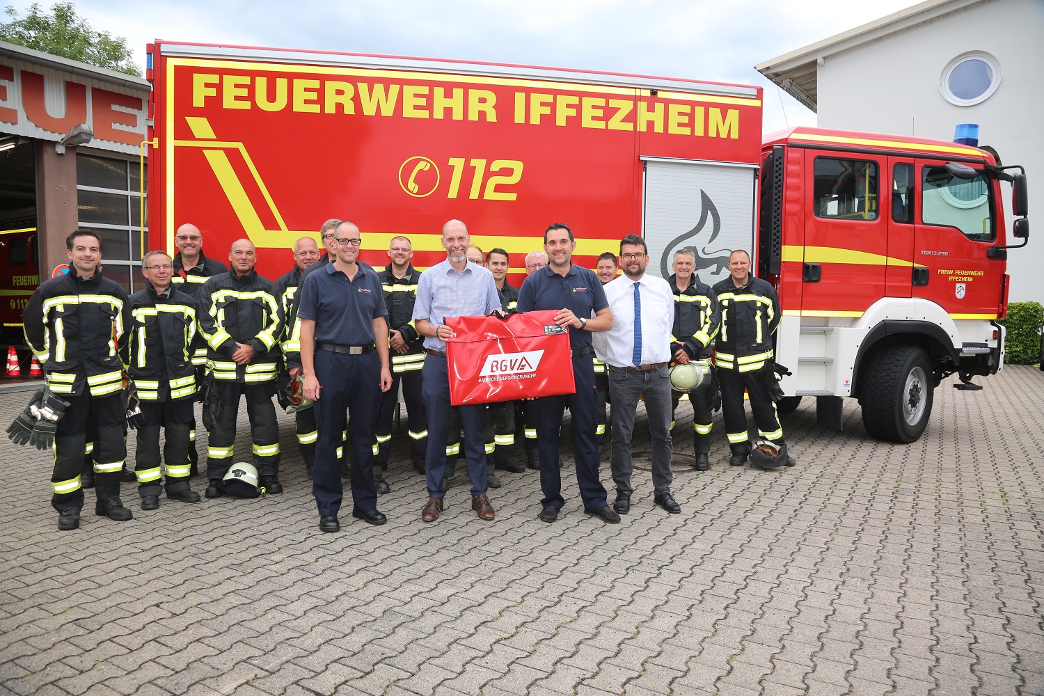 Die Versicherungsgruppe BGV / Badische Versicherungen spendete im Rahmen der aktiven Schadenverhütung einen mobilen Rauchvorhang an die Feuerwehr Iffezheim. Direktionsbevollmächtigter Thomas Vogel und Hauptvertreter Frank Kambeitz übergaben den mobilen Lebensretter an Kommandant Steffen Strobel und stellvertretenden Kommandant Simon Fanz. Im Rahmen der aktiven Schadenverhütung unterstützt die BGV die Arbeit der Feuerwehren in Baden jährlich mit bis zu 500.000 Euro.